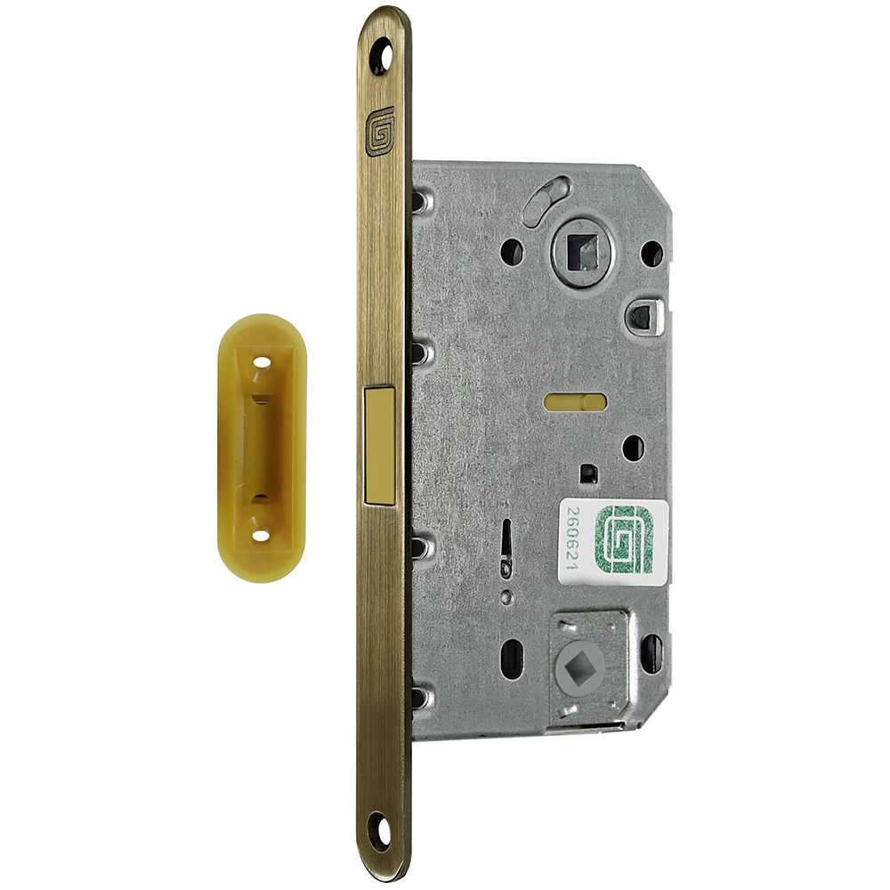 Защелка межкомнатная Soft 1М предназначена для установки в межкомнатные деревянные двери. Подходит для дверей правого и левого открывания (смена направления язычка осуществляется без разборки защелки). Магнитный язычок обеспечивает бесшумное открывание/закрывание двери. Межосевое расстояние 96 мм. Работоспособность 250 000 циклов. Ответная планка входит в комплектацию замка. Цвет: античная бронза.