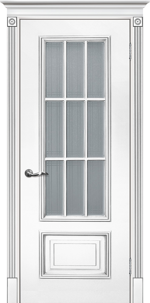 Качественная Межкомнатная дверь Смальта 08 Белый ral 9003 патина серебро продается по цене 28 304 руб. за полотно. Доступные размеры 600x2000, 700x2000, 800x2000, 900x2000. Так же в наличии большой выбор комплектующих к данной модели, подходящих по цвету и фактуре.