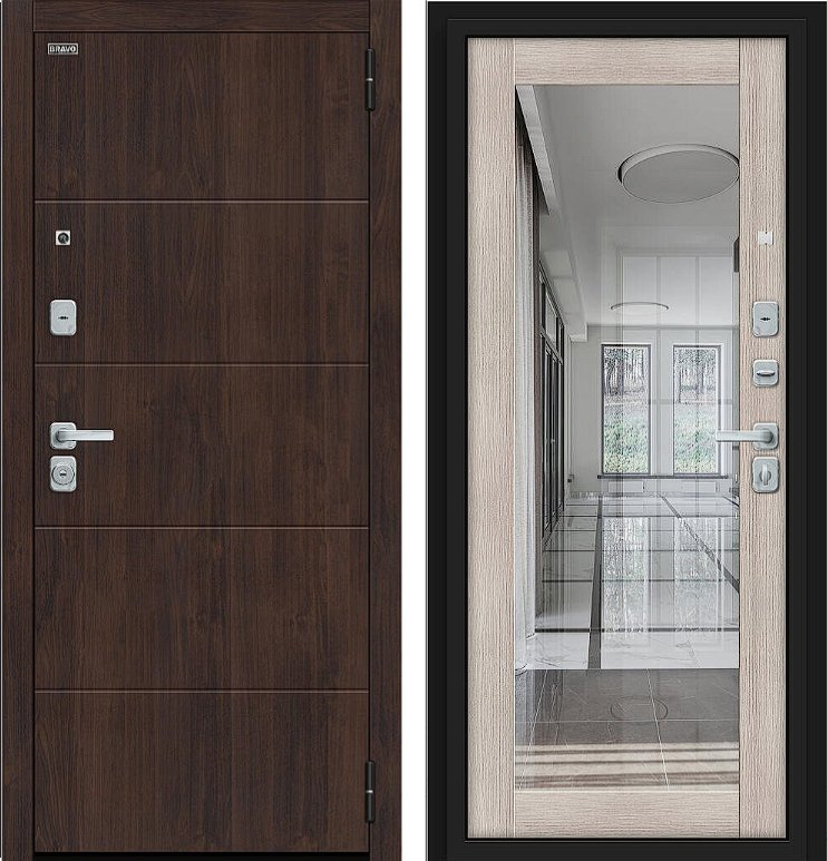Надежная входная Дверь Браво Флэт/BChrome Almon/Cappuccino Melinga премиум класса по цене 42 471 руб. Большая толщина стали защитит от проникновения в ваш дом, квартиру или коттедж. Используется очень качественная фурнитура: замки, цилиндры, ручки, защелки. Покрытие и отделка двери изготовлено под внимательным контролем производителя. Дверь имеет долгий срок службы и гарантию.