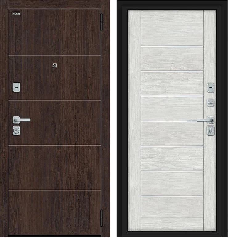 Надежная входная Дверь Браво Прайм/BChrome Almon/Bianco Melinga премиум класса по цене 40 071 руб. Большая толщина стали защитит от проникновения в ваш дом, квартиру или коттедж. Используется очень качественная фурнитура: замки, цилиндры, ручки, защелки. Покрытие и отделка двери изготовлено под внимательным контролем производителя. Дверь имеет долгий срок службы и гарантию.