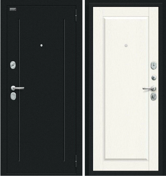 Надежная входная Дверь Браво Сьют Kale Букле черное White Wood премиум класса по цене 36 541 руб. Большая толщина стали защитит от проникновения в ваш дом, квартиру или коттедж. Используется очень качественная фурнитура: замки, цилиндры, ручки, защелки. Покрытие и отделка двери изготовлено под внимательным контролем производителя. Дверь имеет долгий срок службы и гарантию.