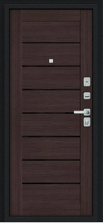 Дверь Браво Техно/BChrome Букле черное/Wenge Melinga - недорогая эконом класса по цене 4 571 руб., отлично подходит для временной установки в квартиру под сдачу, строительство, ремонт. Не смотря стоимость, модель хорошего качества.