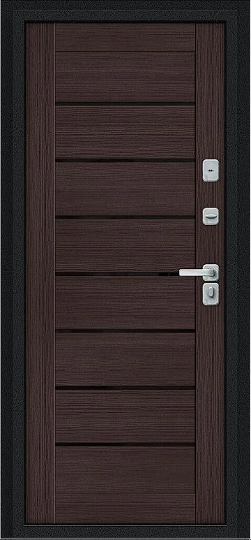 Дверь Браво Thermo Техно Д2/BChrome Букле черное/Wenge Melinga - недорогая эконом класса по цене 4 571 руб., отлично подходит для временной установки в квартиру под сдачу, строительство, ремонт. Не смотря стоимость, модель хорошего качества.