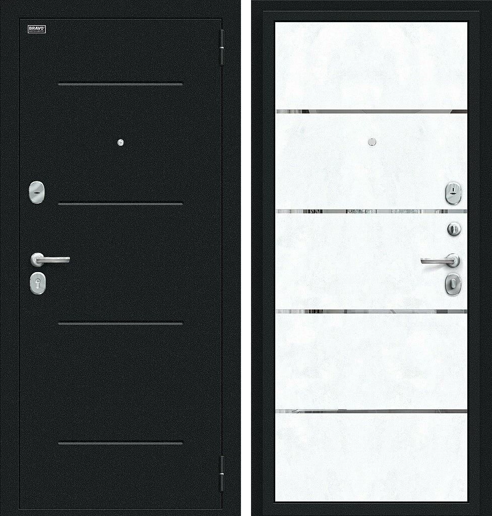 Надежная входная Входная дверь Лайн Букле черное/Snow Art BR4633 премиум класса по цене 30 619 руб. Большая толщина стали защитит от проникновения в ваш дом, квартиру или коттедж. Используется очень качественная фурнитура: замки, цилиндры, ручки, защелки. Покрытие и отделка двери изготовлено под внимательным контролем производителя. Дверь имеет долгий срок службы и гарантию.