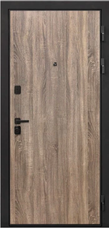 Дизайнерская входная Дверь Интекрон Профит Black (фурнитура черная) Дуб турин класса Люкс с несколькими листами стали, звукоизоляцией и теплоизоляцией. Утепленный короб и полотно защитят от сквозняков и шумов. Модель не только надежная, комфортная, защищенная и высочайшего качества, но и очень красивая! Будет отлично сочетаться с интерьером дома, квартиры или офиса. Сейчас действует выгодное предложение по цене: 77 071 руб.